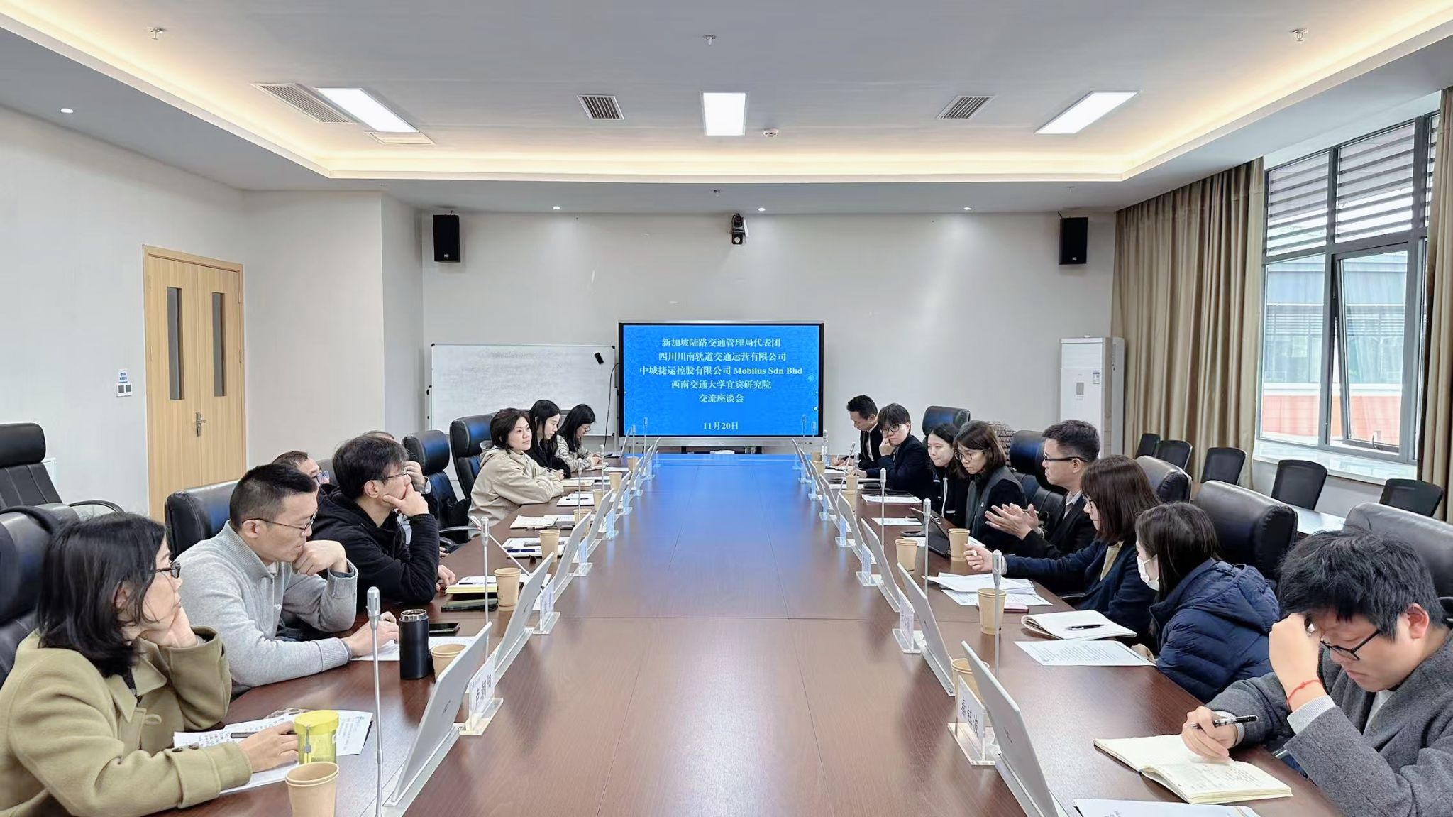 11月20日下午,新加坡陆路交通管理局代表团来宜宾西南交通大学研究院访问交流。双方就城市快速公交系统的建设与运营等问题开展了深入的探讨与交流。川南轨道公司董事长李树培、总经理李洁,宜宾西南交通大学研究院院长王鹰、副院长罗霄以及中城捷运控股有限公司的代表参与了交流座谈。