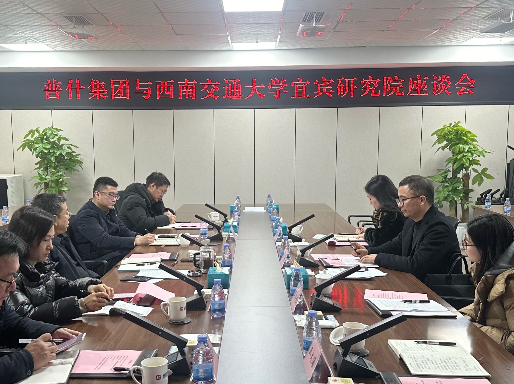 为进一步深化校企合作,推动产学研深度融合,1月15日上午,宜宾西南交通大学研究院院长王鹰率队前往宜宾普什集团,参加双方举办的交流座谈会。参加本次座谈会的人员包括:宜宾西南交通大学研究院院长王鹰,研究院科研合作科科长吴卓恒,科员阳翼韩、王大海。及普什集团党委书记,董事长蒋文春,副总经理闫庆禹,产业发展部副部长孙燕,科技管理部副部长李明星和经济运行部副部长胡紫东。座谈会由普什集团党委书记、董事长蒋文春主持。