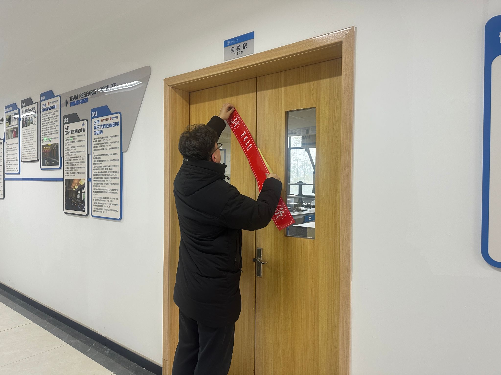 1月21日,研究院专项检查组对全院实验室进行了全覆盖、无死角的安全专项检查工作。严格按照“逐楼、逐间、逐项”的原则,对全院所有实验室进行拉网式检查,重点围绕实验室安全责任落实、设施设备运行、危险化学品管理等关键环节开展排查。针对春节期间无人值守的实验室,检查组逐一核实水电关闭情况、门窗锁闭状态、实验器材及试剂存放规范性等情况,确认符合安全关停条件后,现场张贴统一制式的《实验室封条》并明确张贴实验室检查表,同时注明日期及实验室联系人联系方式,严禁任何人员未经审批擅自启封。同时,建立无人值守实验室台账,实现信息可追溯、管理闭环化。此次安全检查共覆盖42间实验室,张贴封条45张,进一步强化了假期实验室安全管理。